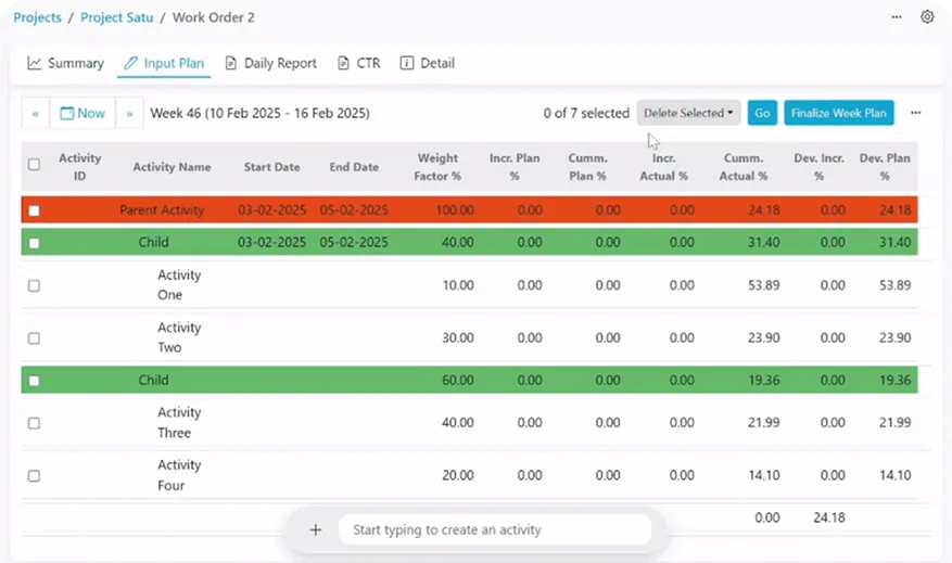 Easily manage and monitor weekly activities with hierarchical organization,